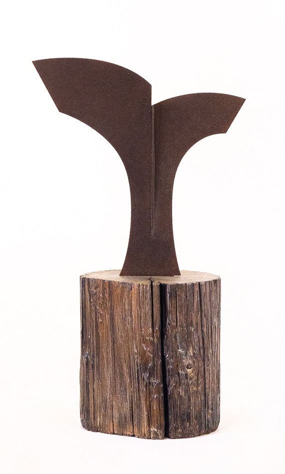wood, oxidized iron, and other materials, he plays